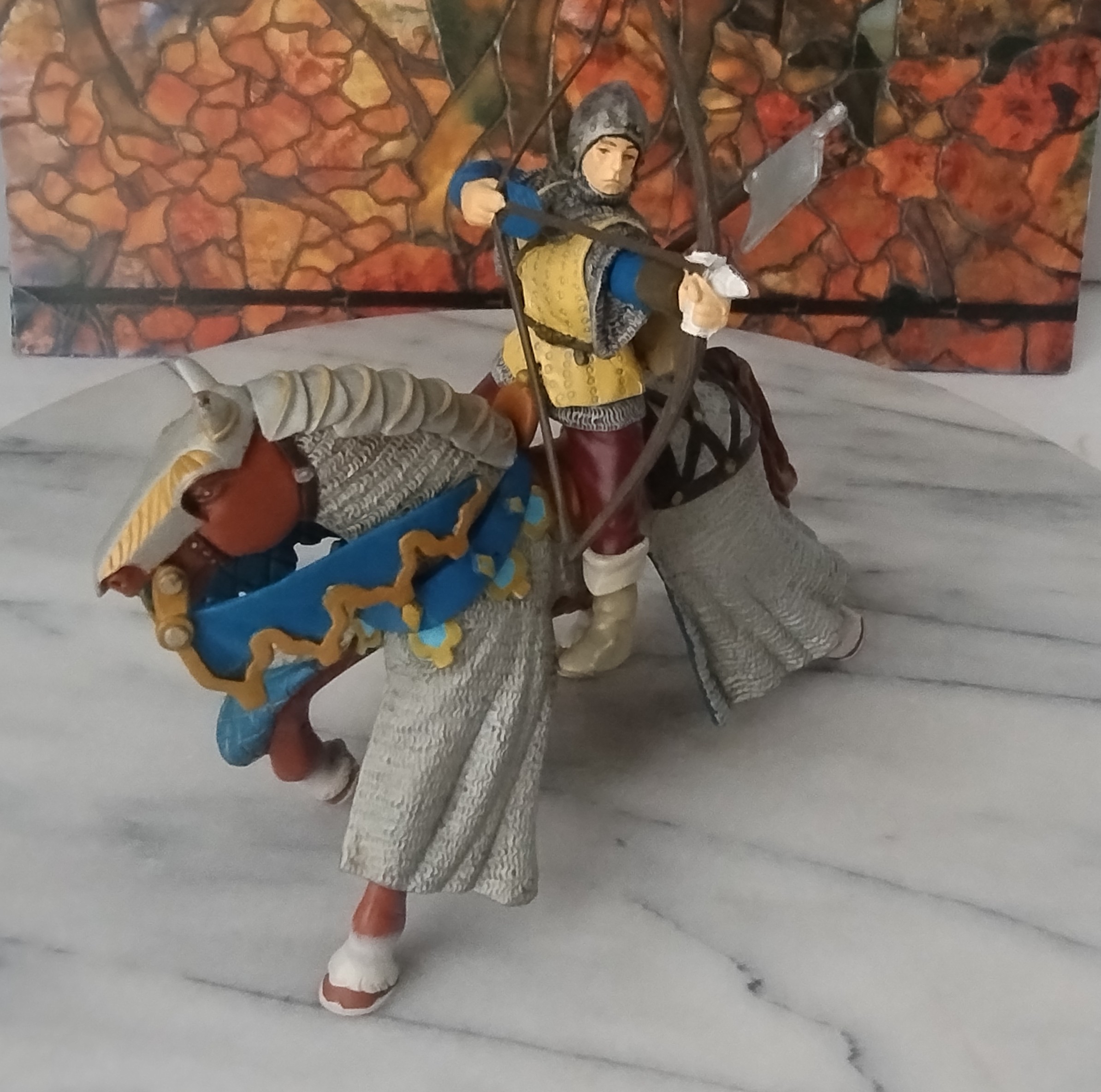 Figura de vinil Papo arqueiro medieval 9 cm montado no cavalo com armadura, 15 cm x 10 cm
