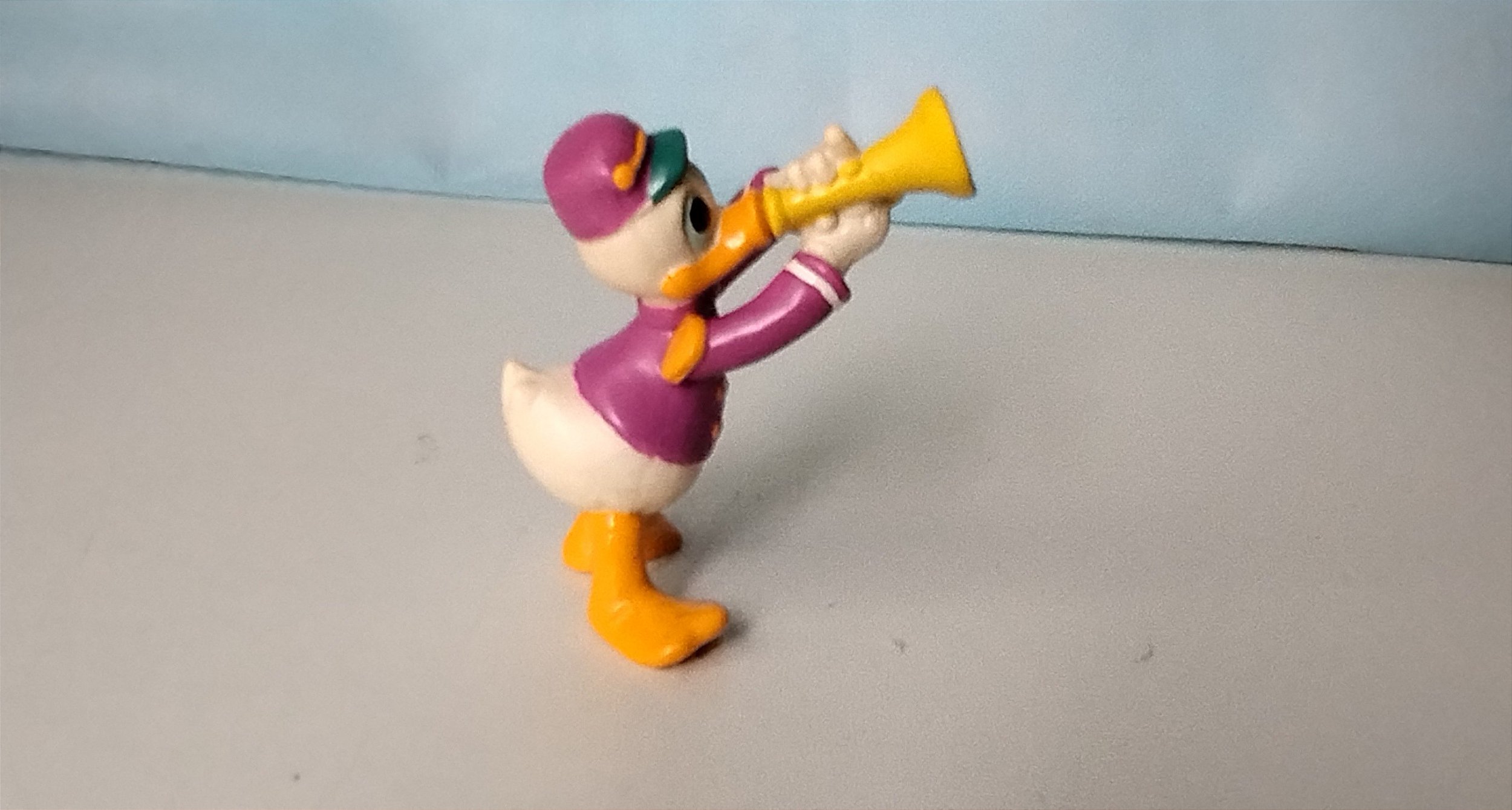 Miniatura Disney de Pato Donald tocando corneta , 6 cm de altura, usada